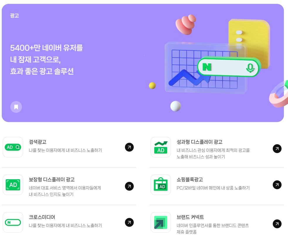 네이버 검색광고는 국내에서 가장 보편화된 온라인 광고 중 하나로, 네이버 검색결과 페이지에 광고를 노출시켜 사용자들에게 노출되게 하는 광고 서비스 입니다. 이 서비스를 통해 자사의 제품, 서비스, 브랜드를 네이버 검색 이용자들에게 직접적으로 알릴 수 있으며, 검색광고를 통해 더 많은 방문자와 잠재고객을 확보할 수 있습니다.
